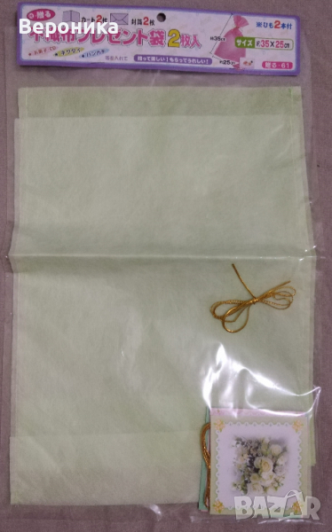 9. Опаковъчни торбички 2 броя за подарък с 2 броя плик и 2 броя картички. Размери на торбичките: 35/25 см. Цена - 2.5 евро.