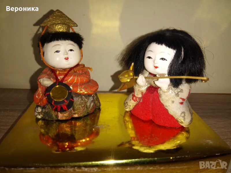 1. Японски винтидж кукли. Комплект момче и момиче , височина 7 см, следи от употреба, забележка: едната длан (пръсти) на момичето са счупени, вижда се на снимката. Цена 100 евро.