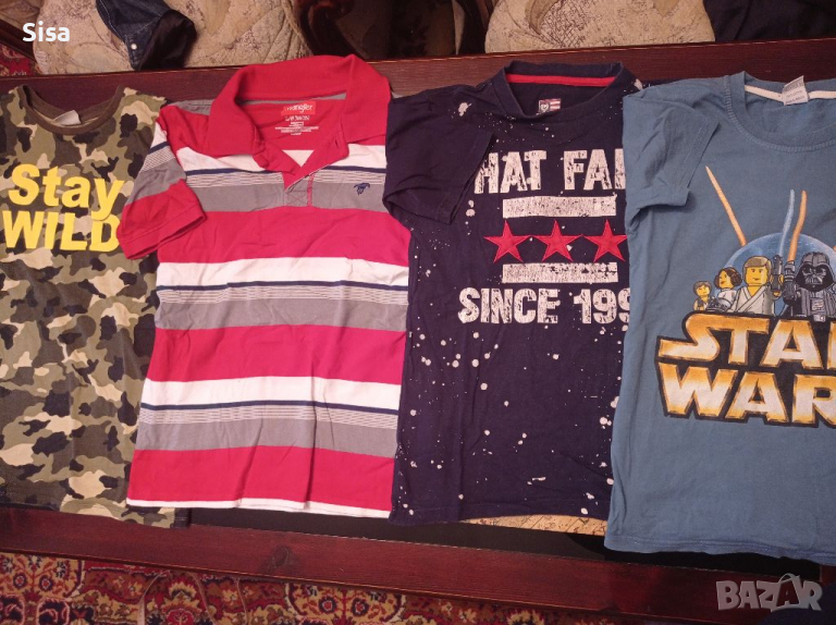 12 на брой тениски, за ръст 146/152, някои нови неупотребявани. Приблизителна ширина подмишници на всичките между 42-44см, дължина 56-60см.