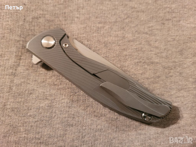 Изключителен флипер на Green Thorn. Дръжка от титан и карбон, Frame Lock механизъм за заключване на острието в отворено положение, острие от K110 стомана. За отварянето на ножа се грижат керамични лагери, тоест движението е изключително плавно и леко. Дръжката на ножа е на половина от титанева слав, а другата половина е от карбон. Има титанев клипс за закрепване в джоб и т.н. В комплекта има калъфче за носене и съхранение.