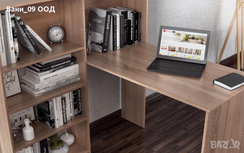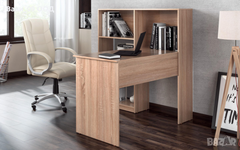 За комфорт в работата у дома или в офиса е добре работната Ви зона да бъде оптимално функционална и подредена според естеството на извършваната дейност. Комбинираното с етажерка бюро осигурява както голям работен плот, така и достатъчно обеми за съхранение. Бюрото е изработено от ламинирано ПДЧ. Покритията са гладки с лесни за почистване и поддръжка повърхности. Всички свързващи елементи са приложени в окомплектовката на продукта.