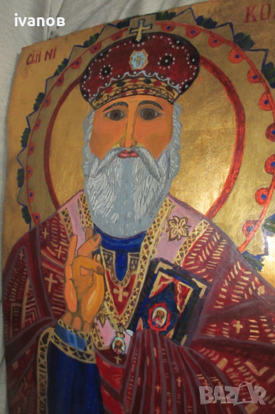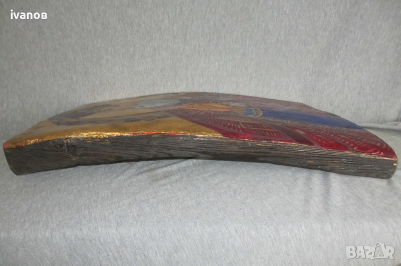 голяма икона ръчно рисувана на дъбело дърво размери на иконата височина 52см ширина 36см дебелина 5см масивна и тежка разгледайте снимките