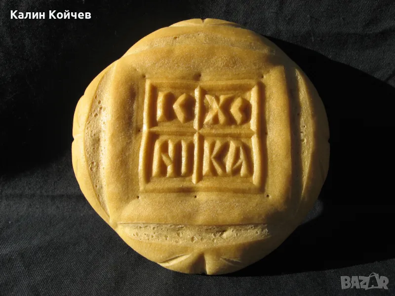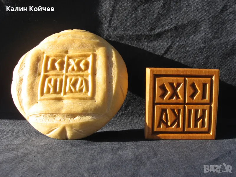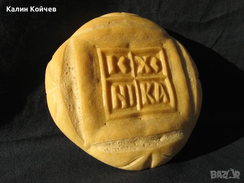 Изображението е на кръст и надпис IC XC NI KA . Съкращение от Иисус Христос Победител.