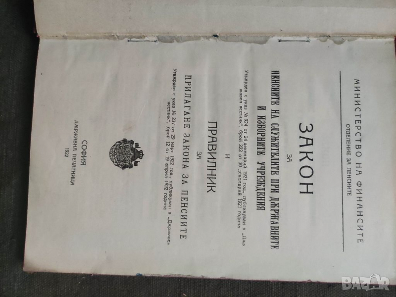 Продавам книга "Закон за пенсиите на служителите при държавните и изборни учерждения 1922 → Обява 36490433