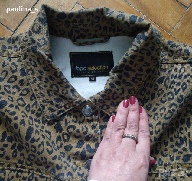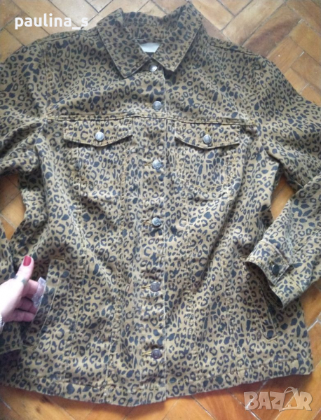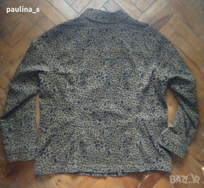 Дънково яке тип сако в леопардов принт / леопардова шарка. Платът е еластичен и покрива няколко размера. Моделът е издължен Denim без платка долу, съобразено с размера. Има джобове, стои елегантно и се отличава. Ново, една бройка.