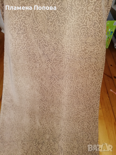 Пердета от плюшен плат в кафяво с драперии към тях.