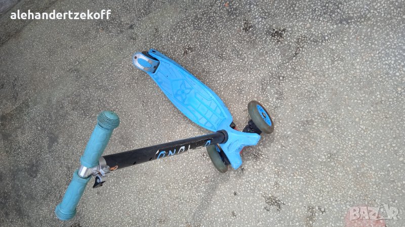 ТРОТИНЕТКА OZORIO S910B АЛУМИНИЕВА СЪС СВЕТЕЩИ ГУМИ СИНЯ. Дясната предна гума не свети, другата предна и задните светят. Тротинетката е в отлично състояние - 55лв. Другите три по 20 лв за брой - едната зелена продадена .Цените може да се коментират. За четирите накуп цена - 100лв