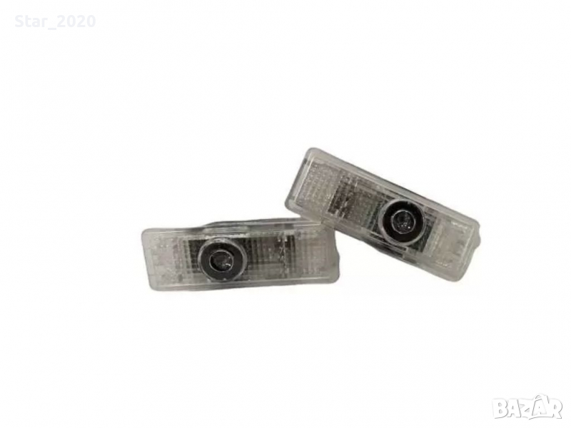 LED цветен плафон за двете врати с 3D лого с мощност: 2х5 W. Водоустойчиви. При отворено положение на вратите логото се проектира на асвалта.