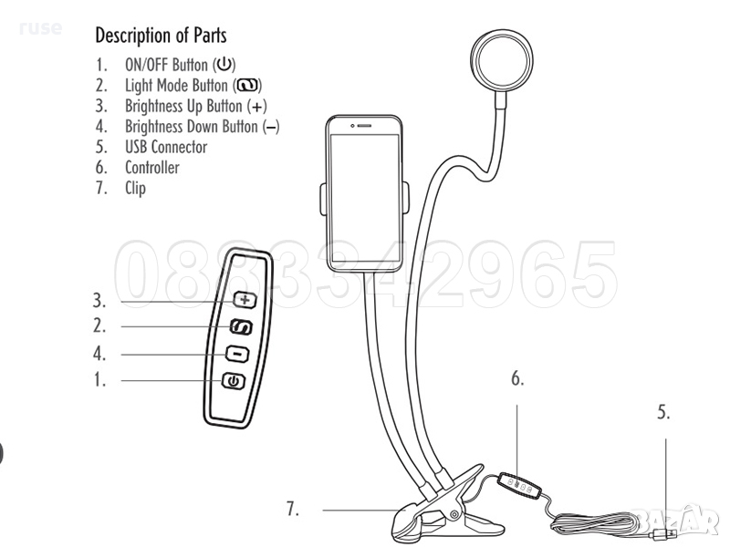 НОВИ! Селфи ринг лампа LED VLOGGING стойка за телефон 2в1