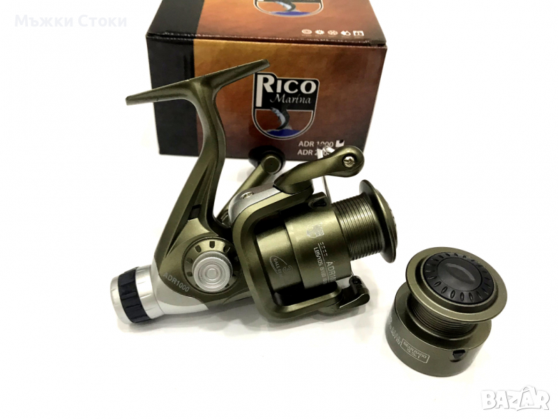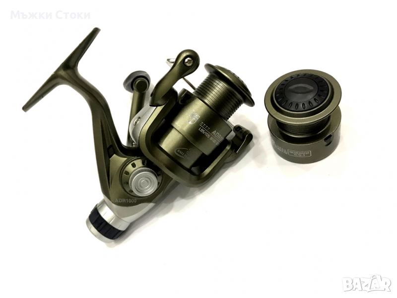 Страхотна рибарска макара за плувка с резервна шпула.Дръжката се прибира много лесно с копче.Заден аванс, Големина 1000