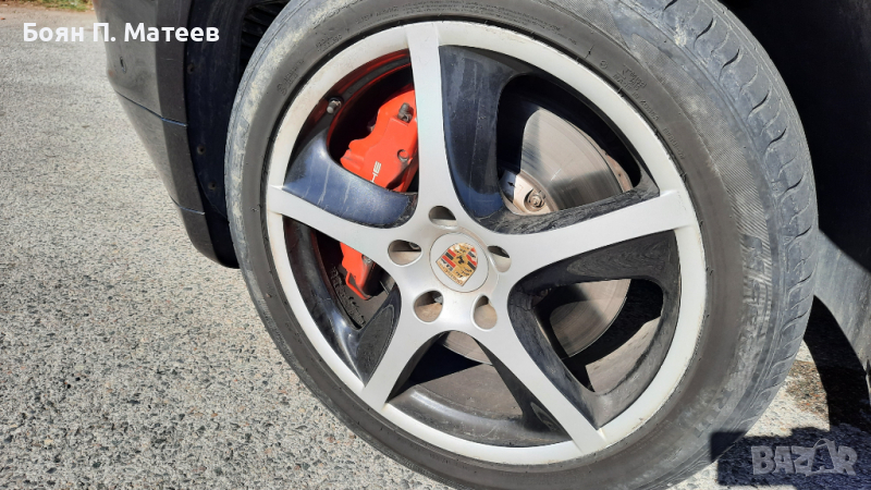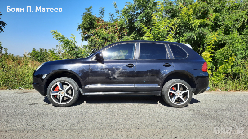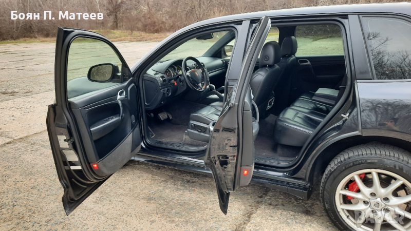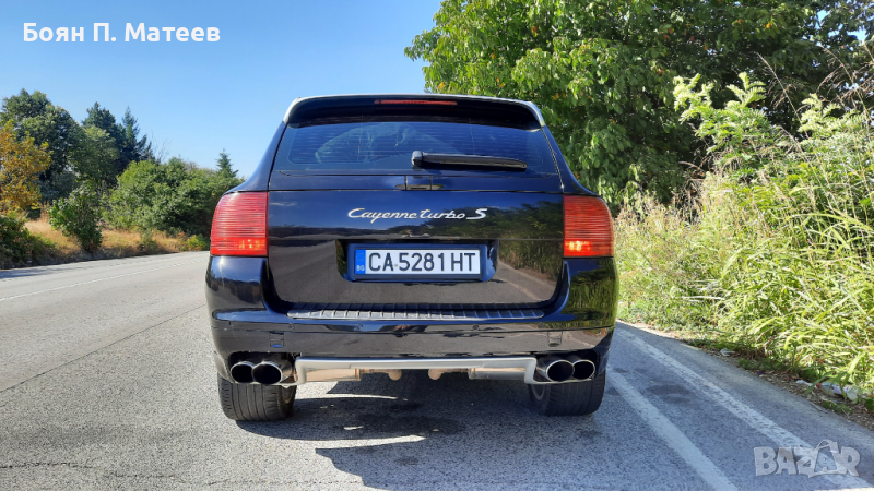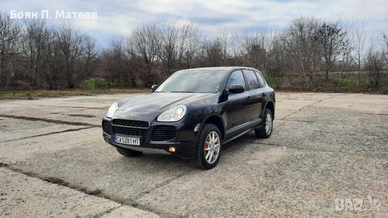 Автентичен Cayenne 955 Turbo S, 521 к.с. (383 kw), произвеждан само през 2006 г., в оригинален вид. Не е Е81! Купен нов в България, аз съм трети собственик. Прословутите протичащи пластмасови тръби на охладителната система са сменени с алуминиеви. Платен данък, редовни документи, легален за каране. Задължително прехвърляне! Никога не е имал газова уредба. Налични катализатори. Сертификат Euro 4. Трета екологична група по българските стандарти за технически преглед. Налични двата оригинални ключа. Налично оригиналното оборудване: инструменти, триъгълник, устройство за помпане на гуми. Sport Design пакет. Панорамен таван. Адаптивно окачване с автоматично регулиране на клиренса, в зависимост от скоростта. Също и ръчно регулиране на клиренса, както и твърдостта на окачването. Рядко срещания 4 зонов климатроник. Подгряване на четирите основни седалки и волана. Два комплекта джанти с гуми, 19 инча със зимни гуми и 20 инча Sport Techno, в цвета на купето, с летни гуми. Двигател, скорости, блокаж на диференциала, понижаваща предавка, окачване, системи за безопасност, екстри, всичко функционира изрядно. Проверка на състоянието в сервиз по избор. Възможен личен тест от купувача срещу предоставен депозит в размер на 2/3 от обявената цена, който се връща само ако не бъдат причинени щети на автомобила. Един куп екстри, които не са особено важни. Съществено важното е, че двигателят разполага с 521 к.с. и 720 н.м. въртящ момент, което превръща колата в най-бързото серийно SUV в света през 2006 г. Също така е и най-мощният сериен модел в цялата гама на Porsche по това време. От другата страна на възможностите й са понижаваща предавка, блокиране на централния диференциал, увеличаване на клиренса над 20 (27 при вариантите без Sport Design пакет) см. и тракшън контрол с офроуд карта при включени бавни скорости. Всичко това пък превръща колата в един много бърз начин човек да отиде на къмпинг, ако му е спешно.