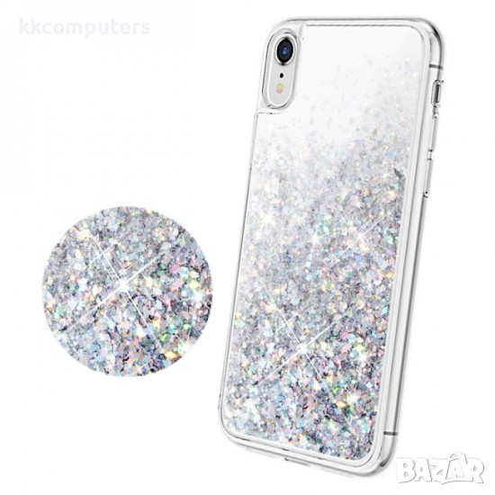 Силиконов калъф гръб кейс MBX Liquid с течност и брокат - iPhone 11 (6.1), Сребрист