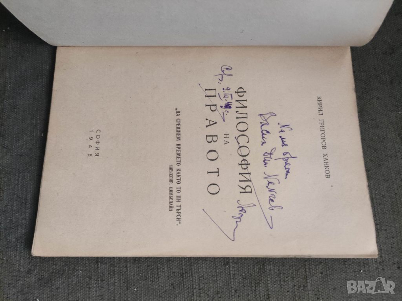 Продавам книга "философия на правото .Кирил Григоров Ханков с автограф → Обява 36503563