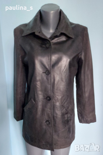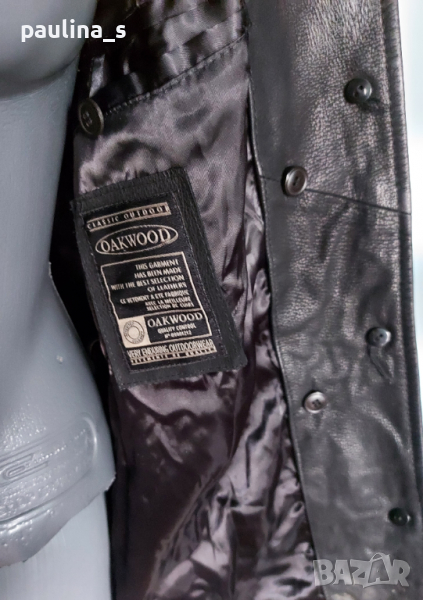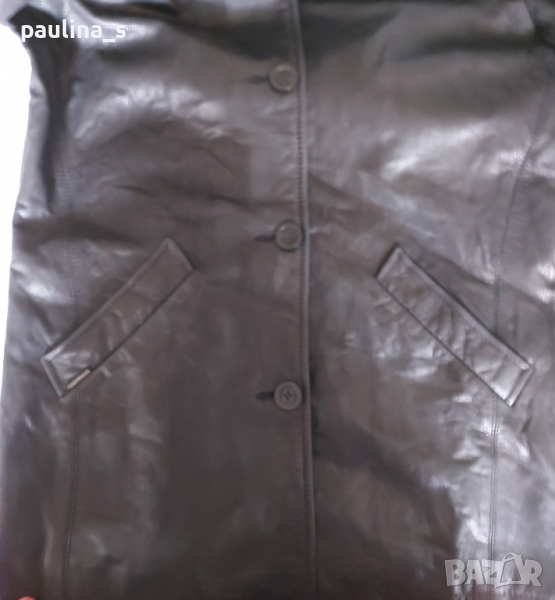 1️⃣ M / L - "oakwood". Цената е крайна 64,99лв. Сако или яке тип риза, от естествена кожа; втален модел с коси джобове и закопчаване тип риза. Кожата е напа, дебела и здрава, еластична е и е като жива. От обработката стои на бляскави люспички, много ефектно, без да е натрапчиво. Без забележки по кожата и хастара, във вид.