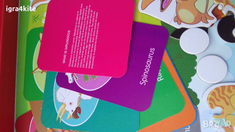 Комплекта съдържа и карти с описание и наименование на животинчето на английски език.