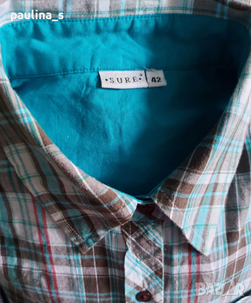 1️⃣ . XL / 2XL / Изумителна дизайнерска риза с акценти "Sure". Цената е крайна, без пазарлъци 15 евро. Декорациите са от допълнителни вшивания на контрастен плат в цвят Тюркоаз, на маншетите, долу и отвътре на раменната платка. Моделът е втален и доста забележим. Без забележки, във вид, без дефекти и етикет.