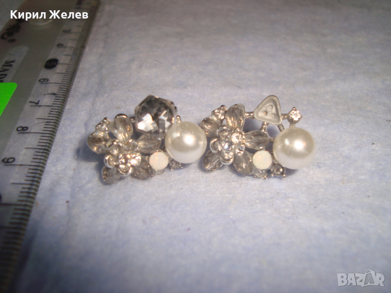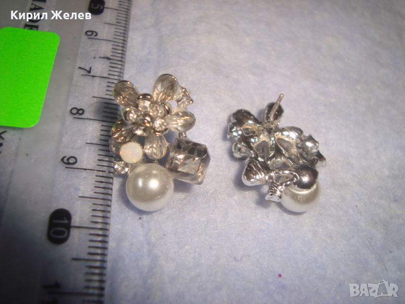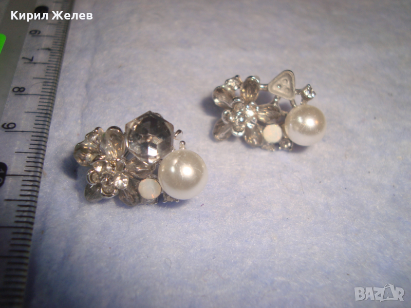 ПЕРЛЕНИ ИНКРУСТИРАНИ с ФАСЕТИРАНИ КРИСТАЛИ СРЕБРИСТИ АРТ ОБЕЦИ 9236