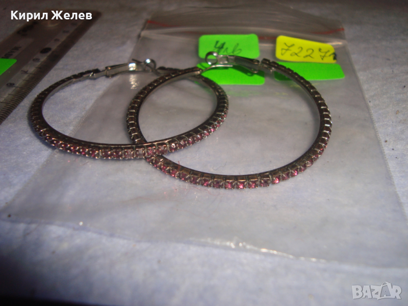 ПОСРЕБРЕНИ РЕТРО - ВИНТИДЖ ОБЕЦИ ИНКРУСТИРАНИ с розови циркони ТИП ХАЛКИ 72271