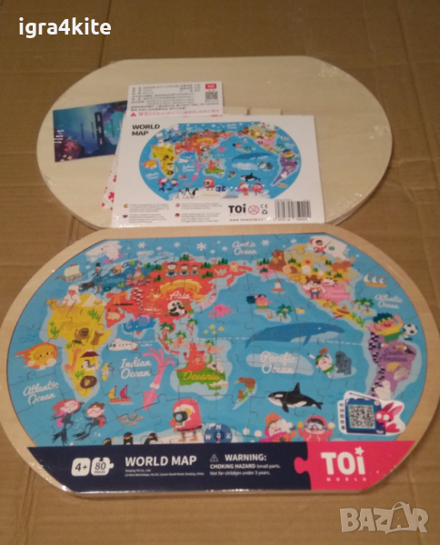 Дървен пъзел Морски Свят - Карта на света в рамка