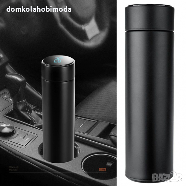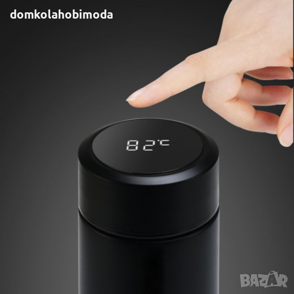 Термо чашата от неръждаемата стомана. LCD екран на капачката за показване на температурата