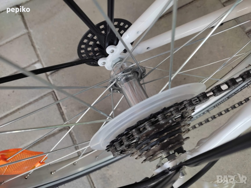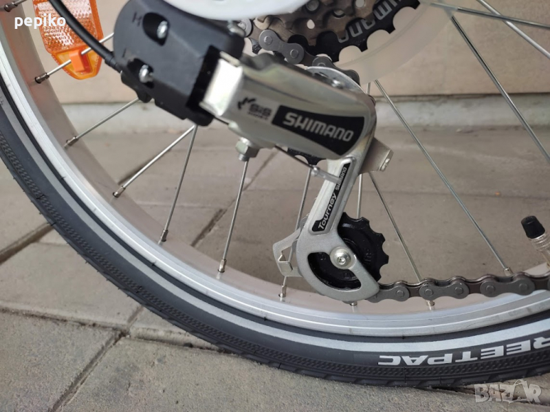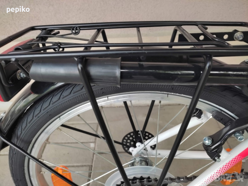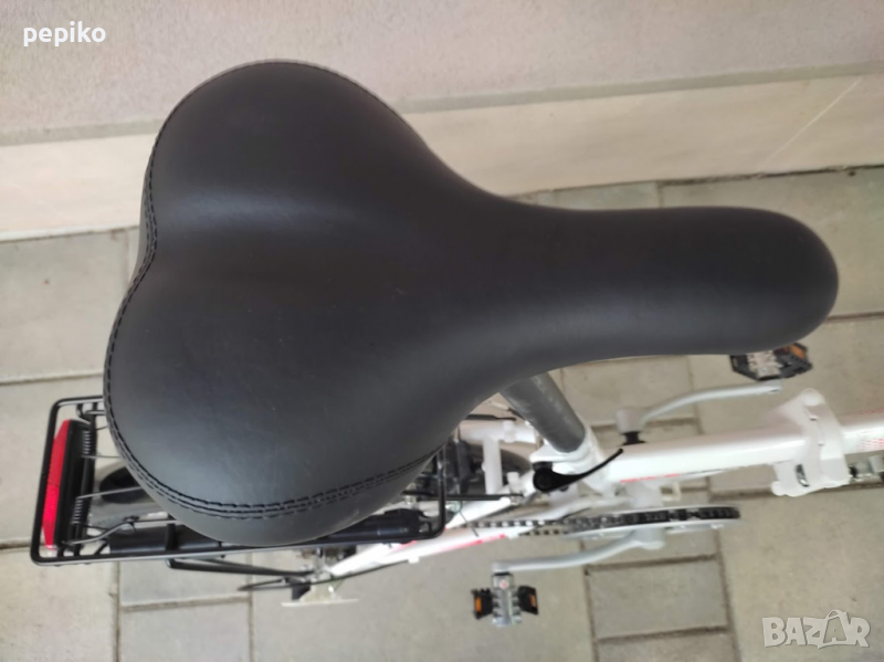 НОВ тройно сгъваем велосипед CITY FOLDO SPORT 20 цола,метална рамка STEEL 20 цола с 6 скорости,фиксирани палцови превключватели SHIMANO SL-RS 35 TOURNEY 6,метални курбели с пластмасово покритие,алуминиеви сгъваеми педали,заден отклонител SHIMANO TX35 TOURNEY,предна и задна никелирани главини,метални калници,метален багажник,удобна спортна седалка,телескопично алуминиево колче на кормилото,алуминиеви лостчета на спирачките,алуминиеви стандартни капли,никелирани спици,предна и задна вибрейк спирачки,гуми с безшумен грайфер и светлоотразителни кантове IMPAC 20 х 1,75,размер на рамката 35 х 56 см.тегло 15,5 кг.с телескопичното кормило велосипеда става и за високи хора . www.velosipedite.eu