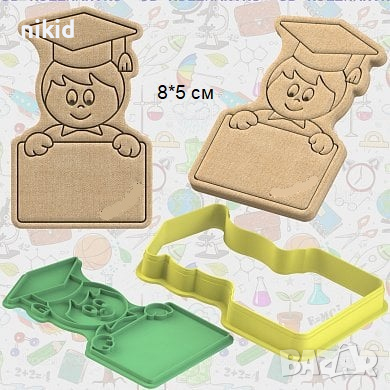 Момиче Момче Абитуриент Бал Завършване с табела пластмасов резец форма фондан тесто бисквитки, снимка 1 - Форми - 36513339 Момиче Момче Абитуриент Бал Завършване с табела пластмасов резец форма фондан тесто бисквитки, снимка 2 - Форми - 36513339 Момиче Момче Абитуриент Бал Завършване с табела пластмасов резец форма фондан тесто бисквитки, снимка 3 - Форми - 36513339 1/3
