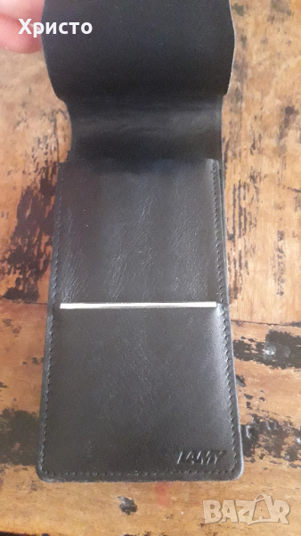 Продавам калъф за химикалки Лами Lamy черен със масивно сребро, естествена кожа фина Напа, модел А64, антикварен уникат, за 4 и по-малко пишещи средства, размер 6.6х13.7х1.4 cm. Среброто е с отпечатана проба на метала проба 925. Висококачествена и стабилна кожа. Много приятен за пипане. Произведен в Германия. Вече не се произвежда. Произведени са много малко бройки. За ценители. От частна колекция. Страхотен подарък. За ценители.