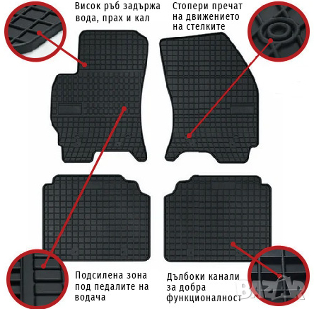 Изключително издръжливи, лесни за почистване и предпазват от разпространението на прах, зацапване и износване на мокета на автомобила.
