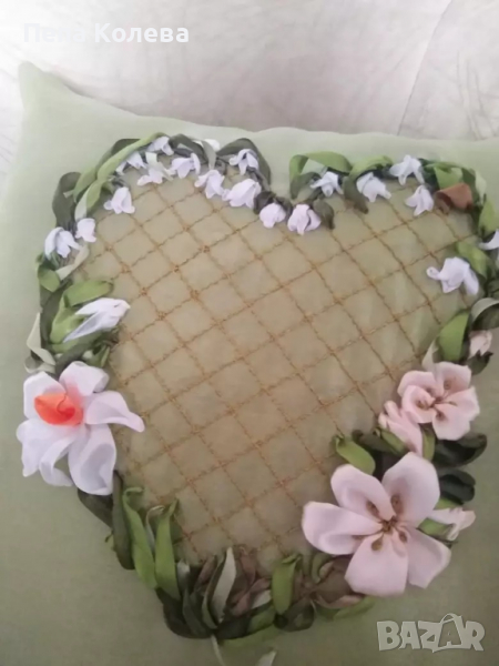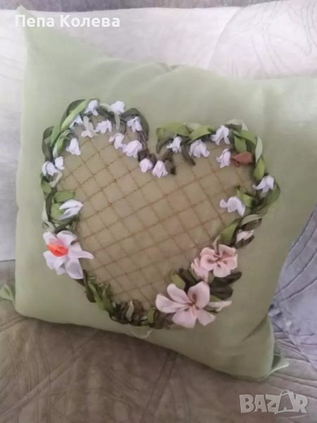 Калъфка за възглавница с ръчна бродерия с лента сатен.Размери на калъфката 48/48см.
