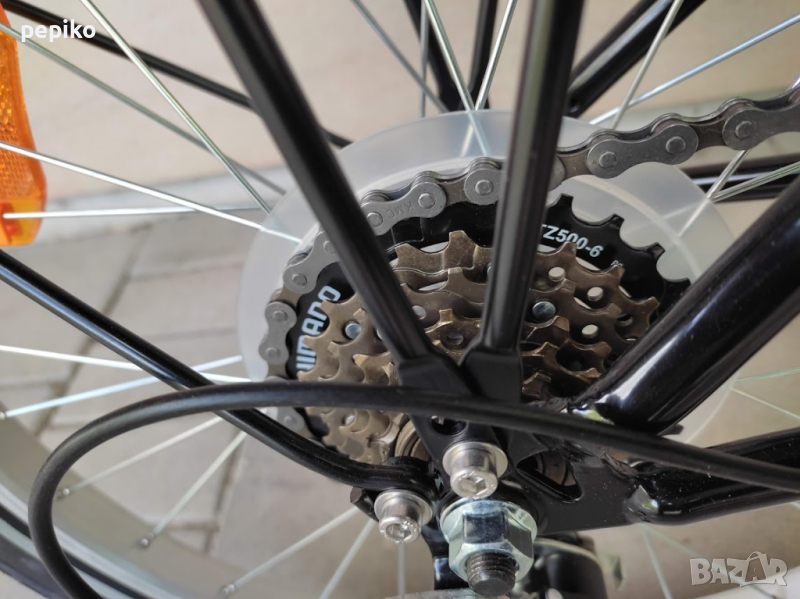 НОВ тройно сгъваем велосипед BLACK FOLDO SPORT 20 цола,метална рамка STEEL 20 цола с 6 скорости,фиксирани палцови превключватели SHIMANO SL-RS 35 TOURNEY 6,метални курбели с пластмасово покритие,алуминиеви сгъваеми педали,заден отклонител SHIMANO TX35 TOURNEY,предна и задна никелирани главини,метални калници,метален багажник,удобна спортна седалка,телескопично алуминиево колче на кормилото,алуминиеви лостчета на спирачките,алуминиеви стандартни капли,никелирани спици,предна и задна вибрейк спирачки,гуми с безшумен грайфер и светлоотразителни кантове IMPAC 20 х 1,75,размер на рамката 35 х 56 см.тегло 15,5 кг.с телескопичното кормило велосипеда става и за високи хора .