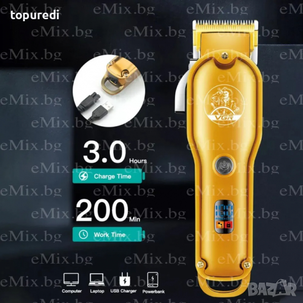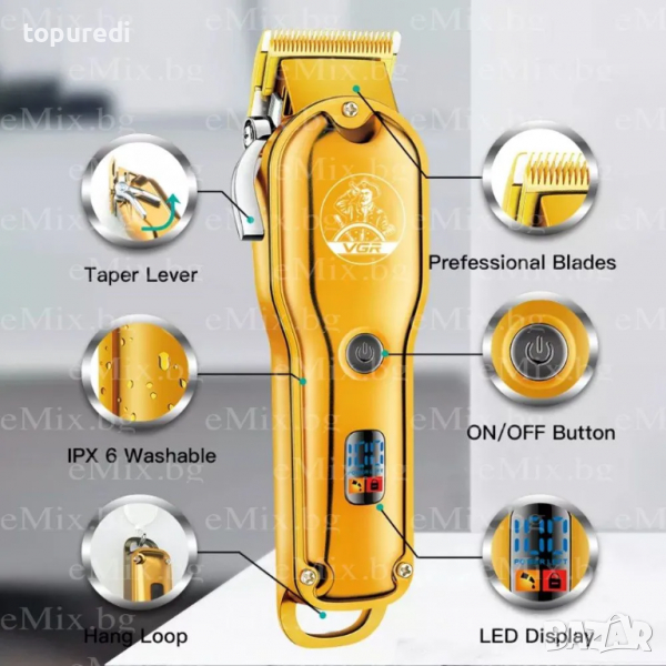 Машинката притежава стоманено острие, за да осигури бързо и ефективно бръснене или подстригване. В средата на предната част на държача на машинката има LCD дисплей, който показва капацитета на батерията. Машинката включва шест приставки с различни размери и предпазител на острието, с които можете лесно да контролирате дължината на косата, която искате да подстрижете и да създавате различни прически. Машинката се захранва посредством USB кабел включен в комплекта. Дизайнът на тримера е изчистен и елегантен и подканва за прецизна работа за оформяне на брада, мустаци и ефектна мъжка прическа.