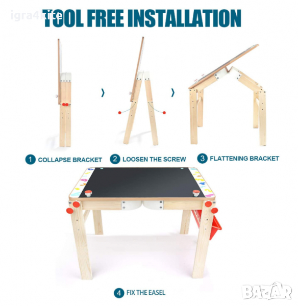 Лесно и просто в няколко лесни стъпки ще преобразувате от маса за рисуване и писане към двустранен статив.