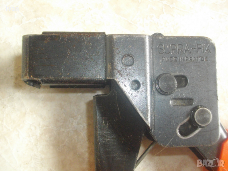 дюбели при работа с гипсокартон.Почти нови,в отлично визуално и техническо състояние.Работят много добре.Цялостна дължина-200мм.Модела е универсален инструмент за монтаж на метални дюбели с разширение в преградни стени.Модела е с ергономична дръжка за добро сцепление.Висок клас клещи за метални дюбели при работа с гипсокартон,професионален модел на Джуниър.Френско висококачествено профи производство,упоменато на маркировките. Марка и модел на инструмента-Junior 91.Маркировки-Fabrication Francaise.Margue et Modele depose S.G.D.G.