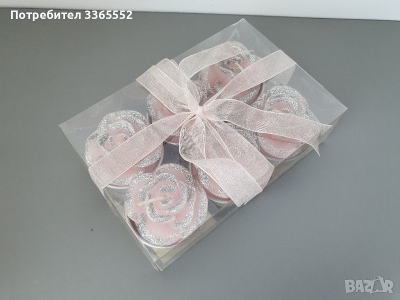 Красиви 6 броя чаени свещи във формата на розички в розово и сребристо. Хубава опаковка, подходящи за подарък.