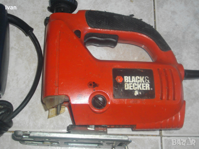 Описание на 400 ватово оранжево зеге английско - Black Decker KS 638 SE. Машината се предлага за части или за ремонт-някой да си я оправи.400 ватов силен и мощен вертикален прободен трион-зеге,модел на Блек Декер,с въртеливост на главата до пълни 360 градуса при рязане и система за бърза сменяемост на режещият нож-тип клик-клик-с 2 движения.Английско оригинално производство,упоменато на фабричните стикери. Марка и модел-Black Decker KS638SE.Машината работи-мотора е силен и мощен,няма никакво искрене на ниво четки и ротор,но движещото рамо на ножа задвижва веднъж и спира.Зегето не е тествано от техническо лице-описаният проблем явно идва от въртеливото движение на рамото-нещо е изронено или излязло.Запазен външен вид на машината.Мощност на мотора-400 вата,обороти-800-3200 в минута,регулируеми с регулатор 7 степени.2 положения на отвеждане на отпадъчният прах към конектора.Автозащита двустранна на спусъка-шпиндел.Наклон на плота-до 45 градуса.Системата на главата за захват на ножа работи отлично.Наличие на прозрачен предпазител на главата.Към машината има 1 брой нож режещ нож-трион за дърво,марка Icd Craft T144D,твърдосплавен,бързоскоростен.ЗАБЕЛЕЖКА ПО ОБЯВАТА-МЕТАЛНИЯТ ПЛОТ И ГЛАВАТА НА ЗЕГЕТО ЛИПСВАТ ОТ МАШИНАТА.ВСИЧКИ ДРУГИ ЧАСТИ И КОМПОНЕНТИ СА НАЛИЧНИ.