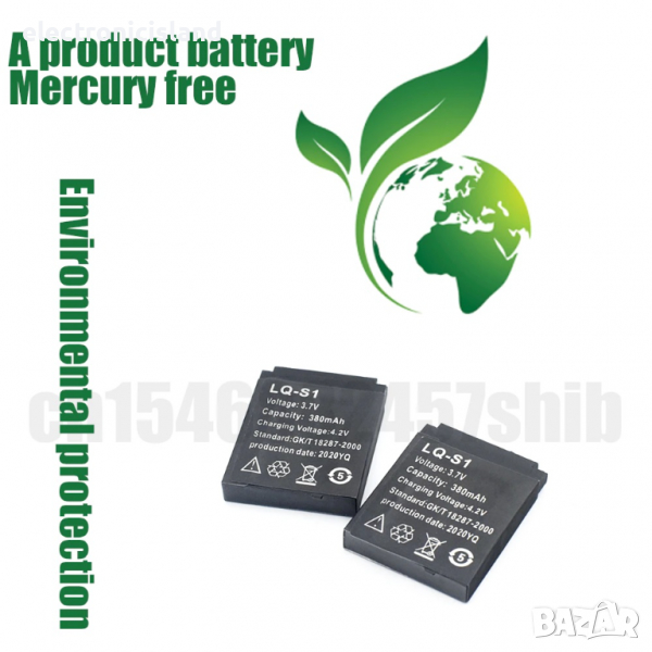 Батерия за смарт часовник LQ-S1, 3.7V, 380 mAh за AB-S1 DJ-09 DZ09 GJD HKS-S1 FYM-M9 SCX-M9 QW09 W8S