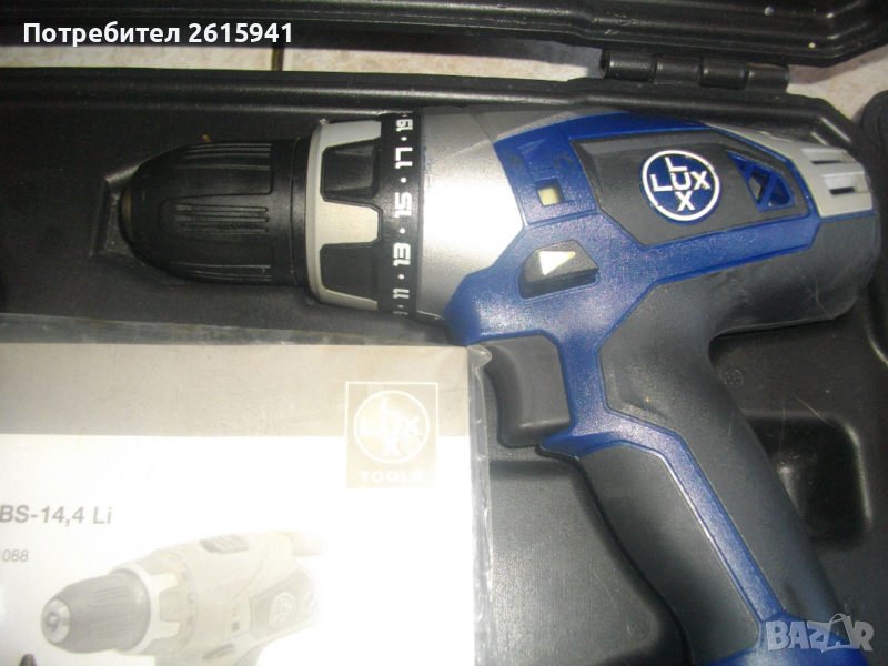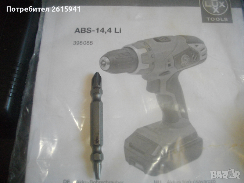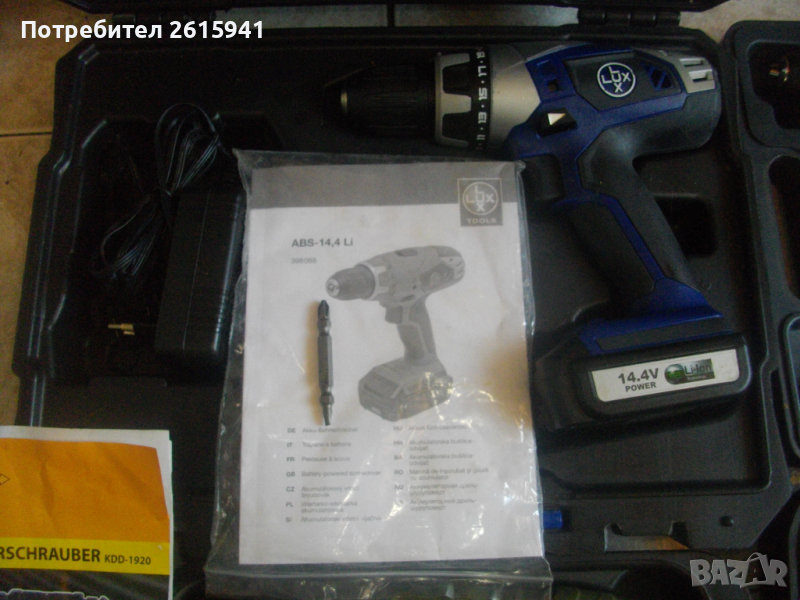 Съвсем нов силен и мощен,масивен 14,4 волтов винтоверт-дрелка,акумулаторна бормашина,литий-йон технология,професионален немски модел.Оригинално немско производство на концерна Lux Tools,2012 година,упоменато на фабричните стикери. Марка и модел-.ABS-14,4 Li-Akku-Bohrschrauber.Машината е професионална-с метални части вътре,издържащи на по-големи натоварвания.