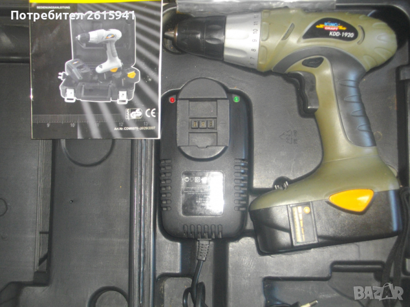 ОПИСАНИЕ НА НОВ НЕМСКИ 19,2 ВОЛТА -KING KRAFT - ЦЕНА 89 ЛВ: Силна и мощна 19,2 волтова акумулаторна бормашина-винтоверт-дрелка.Машината само е пробвана за съвсем кратко.Немско оригинално производство,професионален модел на Кинг Крафт.Марка и модел-King Craft KDD-1920.
