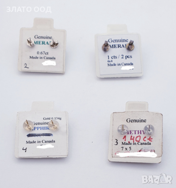 Златни обеци с изумруд, сапфир и аметист → Обява 36529063