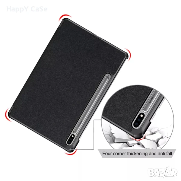 Моля, обърнете внимание, че това е Smart Case калъф, който е изработен за конкретния модел таблет. Не е калъф с прорязана отстрани кожа в която таблета непрекъснато се мести. Не е универсален калъф с щипки или лепящи ъгли, които нараняват ъглите на дисплея и не държат стабилно. Не е въртящ се калъф с дупка отзад и ластик отпред. Не е папка, тефтер и т.н.