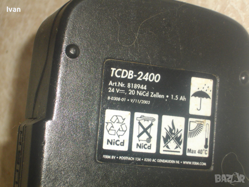 ОПИСАНИЕ НА 24 ВОЛТОВА батерия стар тип Top Kraft / King Kraft - модел TCDB-2400.. Холнадска оригинална - 20 волта, 1,5 ампера - 20 броя кикел-кадмий елемента.