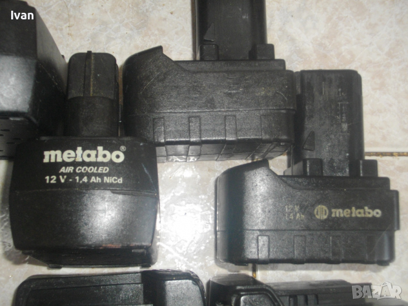 ОПИСАНИЕ НА .12 волтови батерии на Метабо 1,4 ампера - за старите модели винтоверти - за винтоверти и акумулаторни машини на марката.Марка и модел на батериите-Metabo 12V-1,4Ah. Производство-немско оригинално на Akku.Елементи-Ni-Cd-никел-кадмий.Батериите са ЛОШИ.-не зареждат добре, при оригинално зарядно след няколко минути зареждане светна индикация лош елемент.ЗАБЕЛЕЖКА-НАЛИЧНИ 2 БР. БАТЕРИИ.