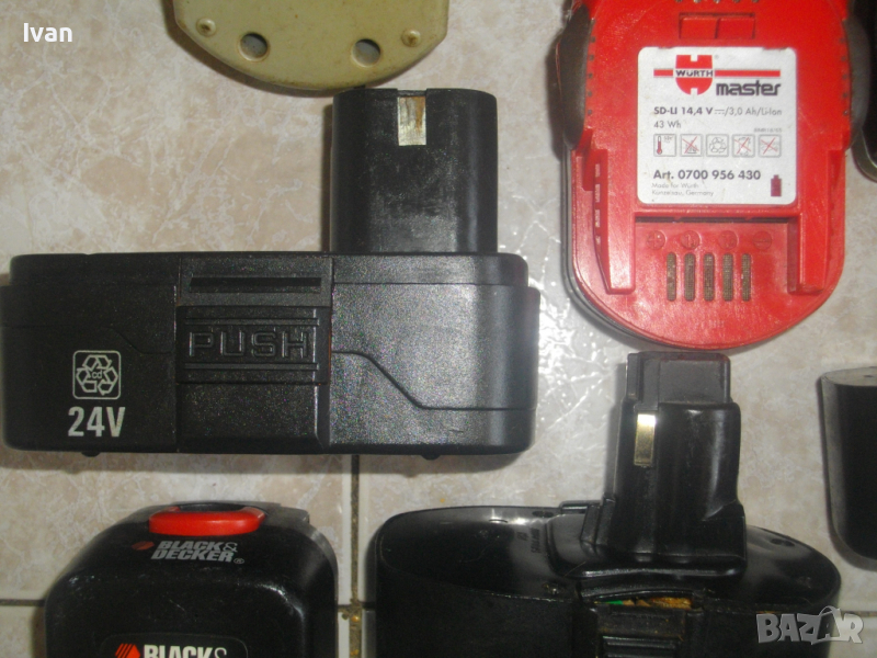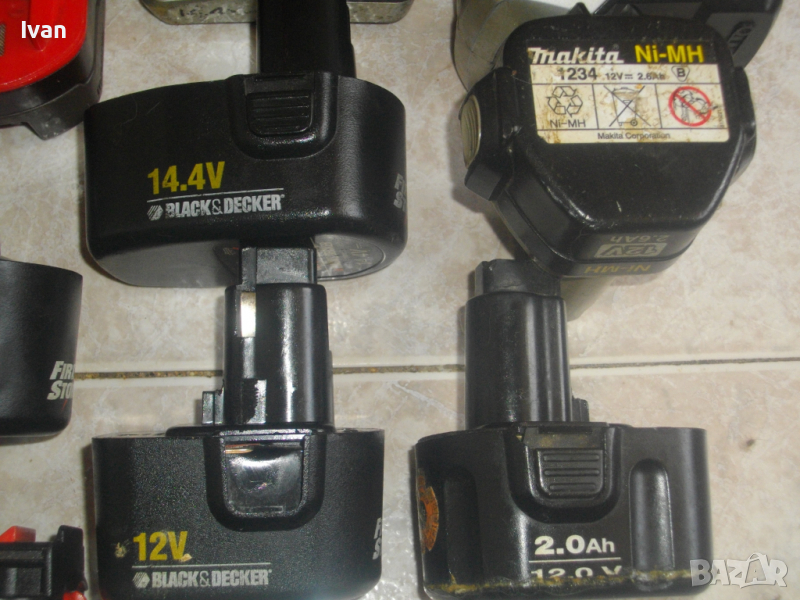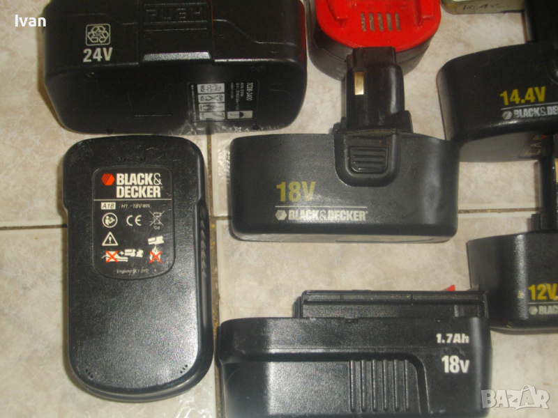 Батерия 14,4 волтова като 12 волтовите тип стар захват - 1 бр- 29 лв./ не е снимана/. зАРЕЖДА СЕ ПРОДЪЛЖИТЕЛНО, ДЪРЖИ ЗАРЯД 12-24 ЧАСА, ВЪРТИ И ЗАРЯДА ПАДА/не държи ампери/. Модел на батерията Black Decker A9276. Производство - Engldnd.