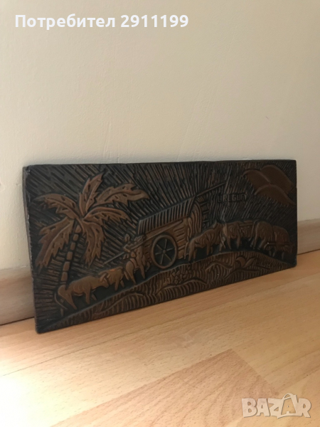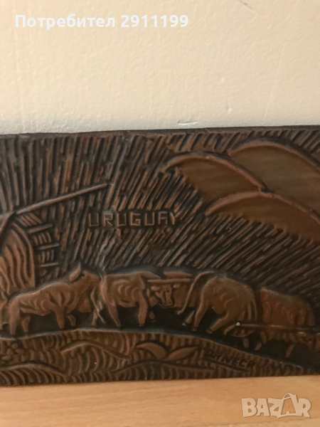 При покупка над 50лв. от профила ми е подарък, само ми кажете че я искате. Картината е метална изработка с дървена основа .Сувенир от Уругвай. Размери:40х18