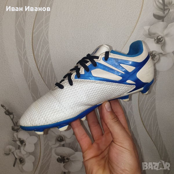 Много малко използвани , без никакви следи и забележки Номер по етикет 36 , спрямо маратонките отговарят на 35,5 Футболната обувка от детето Put 15.3 Fg Ag е част от новата колекция на Adidas.Футболната обувка е същата като тази, използвана от великия и много опасен Placed, и е вдъхновена за играча.Той има повърхност MessiTouch X-Ray , за да осигури прецизни докосвания при дриблиране. Специалният дизайн на шиповете messiGAMBETRAX ни помага да триумфираме във всяка игра.Букетите са идеални за игра на сушата в естествена или изкуствена трева.Обувката се характеризира с логото, поставено в централната част на петата.ИНФОРМАЦИЯ ЗА ПРОДУКТАadidas Messi 15.3 FG/AG J е страхотен модел от серията на аржентинската световноизвестна звезда.Произведен e от специални синтетични материали за по-висока издръжливост и здравина, а отвътре моделът разполага с Agion технология против лоши миризми и микроби.Технологията Adi-Fit дава възможност да отстраните стелката от обувката за да наложите крачето върху нейните специалните очертания. Така ще бъдете сигурни, че обувките ще паснат перфектно и няма да създават проблеми на детето.ЦВЯТ: БялСЪСТАВ: Външна част - висококачествени синтетични материали, Вътрешна част - текстил