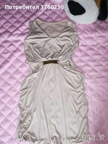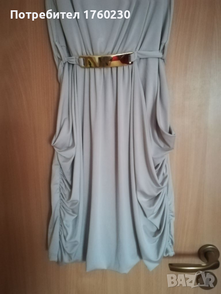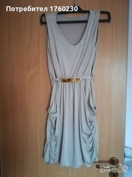 Продавам дамска рокля от трико обличана по повод. Страхотна материя, падаща тежко и почти немачкаема. Има коланче. Размер ХС, С.