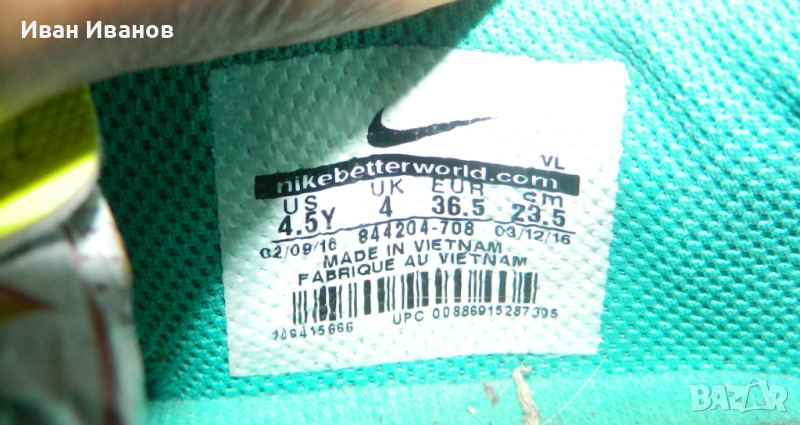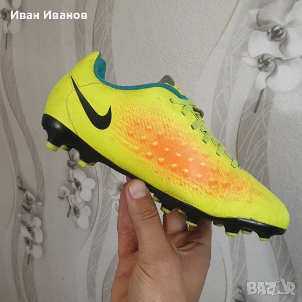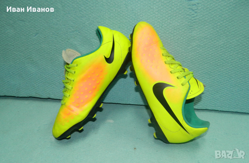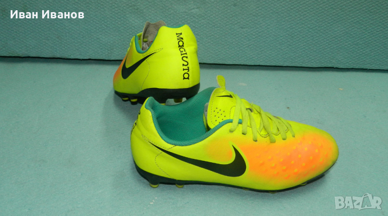 Обувани няколко пъти , без следи и забележки Номер по етикет 36,5 , спрямо маратонките отговарят на 36 номер Подсилете своята игра в детските футболни обувки Nike Jr. Magista Ola II (FG). Нов рационализиран силует предлага по-плътно прилягане с по-малко материал в горната част. Синтетичната кожа и смесица от конични и остри шипове гарантират, че получавате докосването и сцеплението, от което се нуждаете, за да правите големи игри.Материал: Синтетична кожаОпростеният силует осигурява по-леко и плътно прилягане.Синтетичната кожа приляга към стъпалото за последователно докосване.Комбинацията от конични и остри шипове увеличава максимално проникването и сцеплениетоАсиметричната система за връзки разширява зоната за контрол на топката.Формованата, перфорирана подплата за чорап осигурява леко омекотяване.