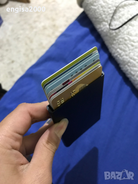 - Портфейлът е със специална защита против кражба на пари от безконтактни кредитни/дебитни карти. След слагане на картите в портфейла те излизат с натискането на бутона.