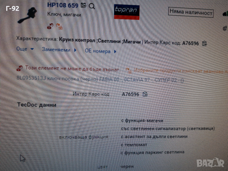 8L0953513J=108659755**NEU**HANS-PRAIS**VAG*AUDI*VW*ЛОСТ ЗА МИГАЧИТЕ++БОРД++