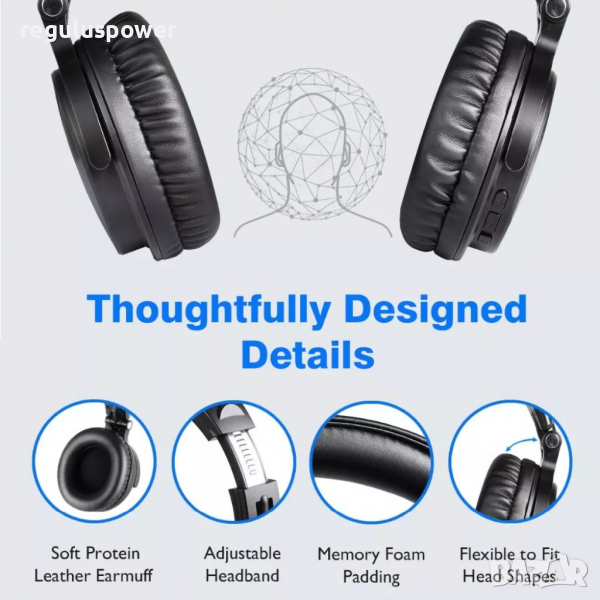 Меки наушници изработени от протеинова кожа и мемори пяна осигуряват комфорт при продължително носене.